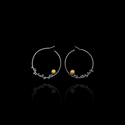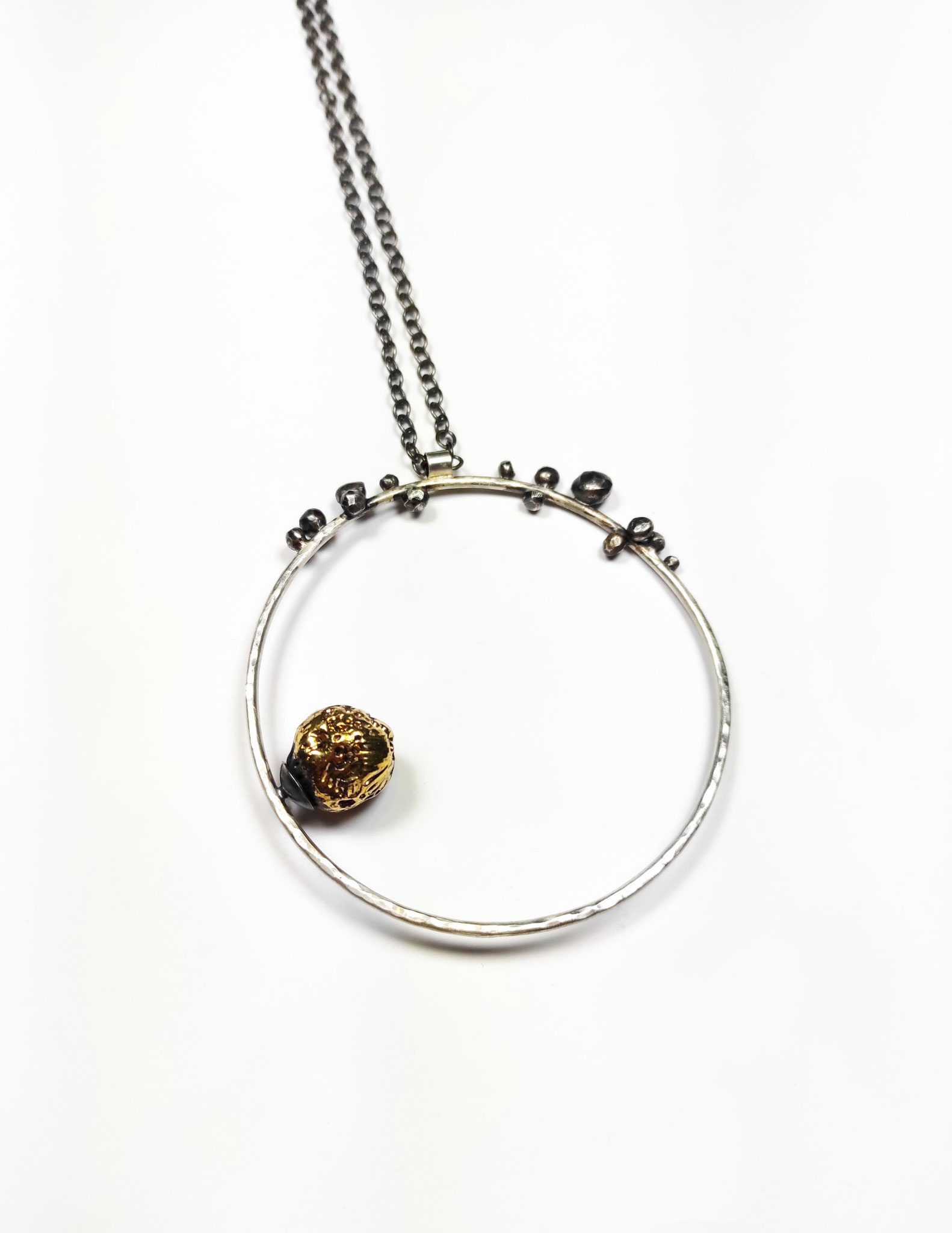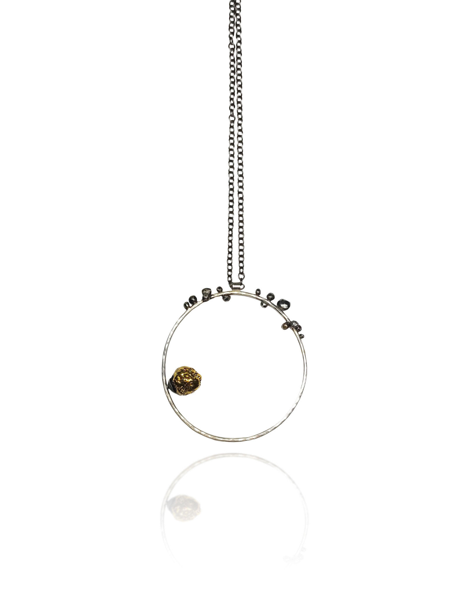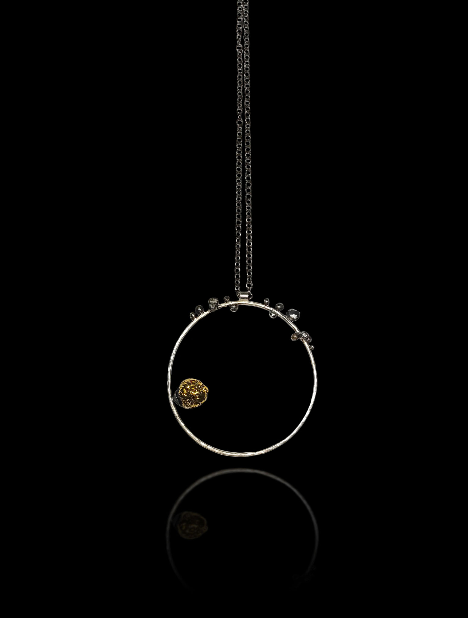 Pendente in ARGENTO 925 , ARGENTO patinato e PORCELLANA nera dipinta con ORO liquido