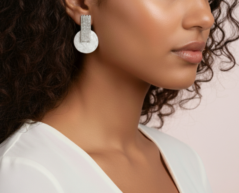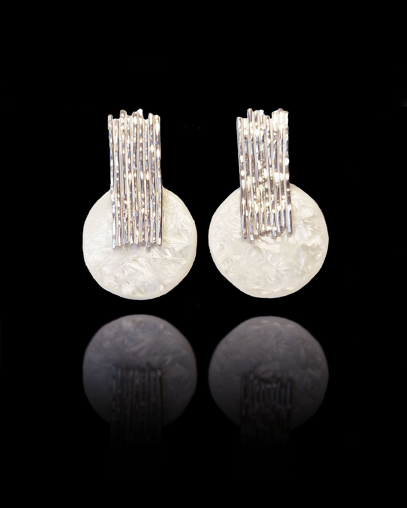 Orecchini con bacchette in ARGENTO 925 martellato e PORCELLANA bianca smaltata con cristallizzazioni