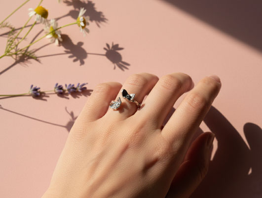 I gioielli sono creati con l'antica tecnica della fusione a cera persa partendo dalla manipolazione della cera oppure da elementi naturali veri ricreati in metallo.