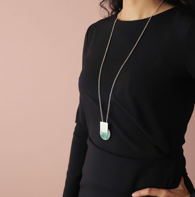 Collana Nebulosa - lastra in argento e porcellana con cristalli - Collezione Astri nebulosa- 130€