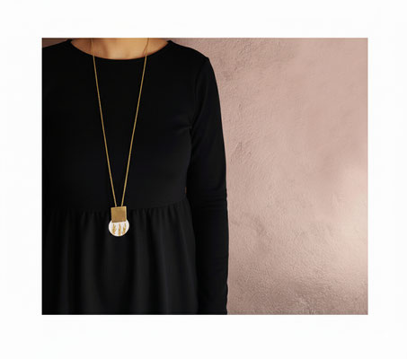 Collana "Treasure" - PORCELLANA NERA smaltata bronzo dorato e OTTONE Martellato - 210€